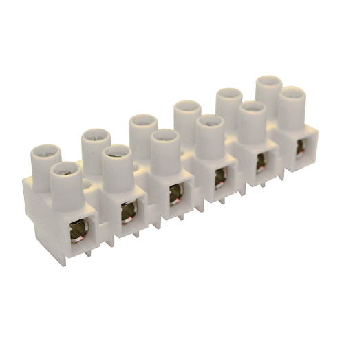 HE16HWPR/12; Eurostrip; finger safe, 12 pole; Feed Through; Standoff Feet; Panel Mount; Pole Spacing: 15mm; Mounting Hole Diameter: 4.3/5.7mm; Stripping Length: 8.5mm; 18-6 AWG; 600V; 63A; RoHS Compliant, easily cut to make different positions (i.e., 2, 4, 6, 8 10 pole).