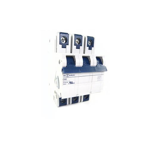Triple Pole, C Curve, 60 Amp, ABL Sursum Circuit Breaker; UL 1077 Recognized Supplementary Protector; DIN Rail Mounted; 17.5mm width per pole; Thermal Magnetic; 480Y/277V AC, 50/60Hz; 10kA Short Circuit Withstand Capacity; C-Trip Characteristic; Rated Current: 60A; Three pole; RoHS Compliant; FEATURES: Hinged terminal cover design allows easy access to terminal screws with a broad range of screwdrivers. Individual part number is shown on each circuit breaker and is legible when installed on the panel. Designated marking area is protected with clear hinged cover. DIN Clip can be released when necessary. Standard dual connection terminals.